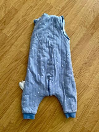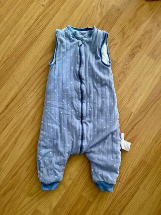 Saco pijama niño con un diseño de rayas verticales y pequeños detalles blancos. Talla: 2-4 años - Color azul claro. - Cremallera frontal que abre en ambos sentidos. - Puños en tobillos. Si te interesa tengo 2 unidades