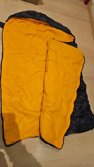 Saco de dormir Quechua para niños, ideal para aventuras al aire libre. Su diseño es cómodo y práctico. Tengo 4 unidades disponibles, si estás interesado en adquirir más escríbeme y lo hablamos. - Color azul y gris. - Ribete amarillo. - Cierre con cremallera.
