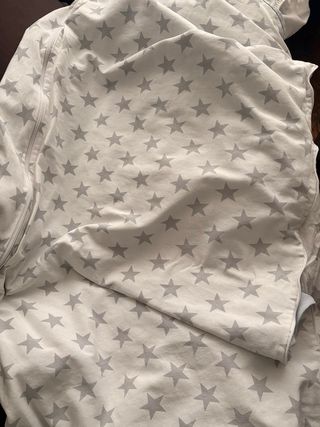 Saco nórdico 70x160 para cama ikea mas nordico Ideal para que los niños no se caigan de la cama ni se destapen Incluye nórdico interior blanco Ojo!! **cremallera rota de un lado, hay que cambiarla***** con un bonito estampado de estrellas grises sobre fondo blanco. Ideal para la habitación de los más pequeños. - Diseño de estrellas. - Tejido suave y confortable.