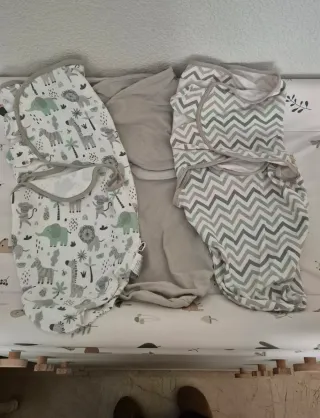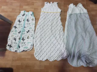 Pack de sacos de dormir para bebé recién nacido por 3 unidades. El bebé se siente contenido como en la panza y facilita para que duerma en la noche. Mega útil con mi bebé y lo vendemos ahora porque ya tiene más de 3 meses. - de 0 a 3 meses. - colores verdes y gris. - aplica a niño o niña, yo tengo una niña. - de algodón con velcro. - son 3 porque si uno se ensucia, tenes los otros como opciones y créeme que se ensucia muy seguido. Estoy en el barrio del Camp Nou para entregar en manos.