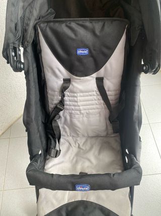Carro de paseo de la marca Chicco, ideal para llevar a los más pequeños cómodamente. Peso máximo 22 kilos En perfecto estado, con muy poco uso, se cierra modo paraguas, ocupa muy poco espacio. Súper ligero. Color negro y gris. - Capota. - Arnés de seguridad. - Ruedas delanteras giratorias. Se puede ver sin compromiso. Me costó 120€ REGALO 2 sacos de entretiempo Más cosas de bebé o niño en mi perfil.