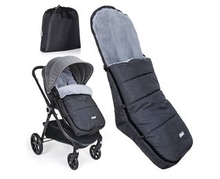 Saco para silla de paseo, ideal para mantener abrigado a tu bebé en los días fríos. - Exterior gris con detalles negros. - Interior gris y gris ocuro