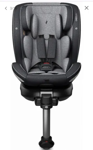 Silla de coche Osann Oreo 360 en color gris y negro. Diseño moderno y funcional. - Tapicería de tela. - Base giratoria 360 grados. - Sistema de sujeción seguro isoflix. Es un asiento infantil giratorio 360° con instalación ISOFIX, lo que facilita colocar y sacar al niño sin tener que estirar el brazo por detrás del asiento. Cumple con la normativa i-Size (ECE R129) y suele usarse desde aproximadamente 40 cm hasta unos 105 cm, ideal desde bebé hasta varios años (≈4 años). � GoldenGames Tiene reclinación, protector acolchado y sistema de arnés ajustable para mayor comodidad y seguridad.