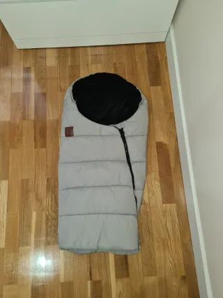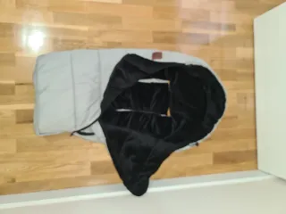 Saco de invierno muy cálido para silla de bebé, ideal para mantener a tu pequeño abrigado en los días fríos. - Exterior negro acolchado. - Interior forrado en tejido gris suave. - Capucha ajustable con cordón. En muy buen estado