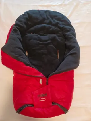 Saco para cochecito de bebé en color rojo y negro. Ideal para mantener al pequeño abrigado.Forro Pilar grueso interior negro, con todos los orificios para pasar cinturones de protección del niño, se puede separar por si interesan solo piernas.,impermeable.Se entrega en mano en Calafell o Manresa y también se hacen envíos.Esta como nuevo pues se uso poco en 2ª residencia. - Cierre con cremallera frontal. - Capucha ajustable con cordón. - Forro interior polar suave.