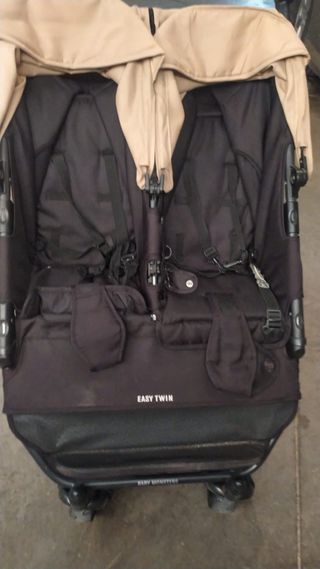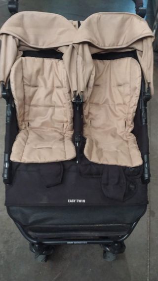 Carro gemelar Baby Monster Easy Twin en color negro y capota beige. Diseñado para dos niños, ofrece comodidad y practicidad. Se pliega fácilmente. Incluye 2 sillas y un capazo, tambien plástico de lluvia. Regalo dos sacos de invierno y un saco para el capazo en color beige. - Doble asiento. - Capota protectora. - Chasis resistente.