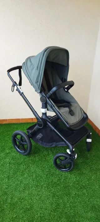 Silla de paseo Bugaboo Fox 3 en color verde. Es silla, con el capazo de recién nacido en color verde. También se incluye: - Saco original de invierno Bugaboo de color gris - Capota original de verano super ventilada color verde. - Sombrilla original color verde - Funda impermeable para lluvia de la marca. - Bolsa para las cosas del niño. Lo único que se observa es el roce en la polipiel del mango donde se agarra. Lo demás en perfecto estado. Diseñada para ofrecer comodidad y versatilidad. - Chasis negro. - Capazo y silla. - Ruedas todoterreno.