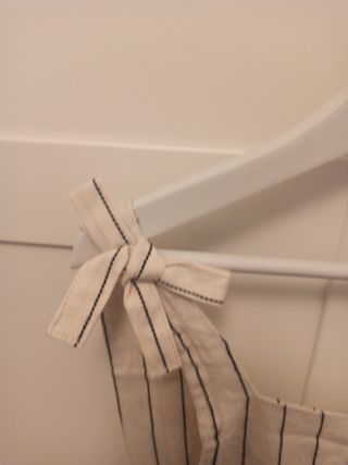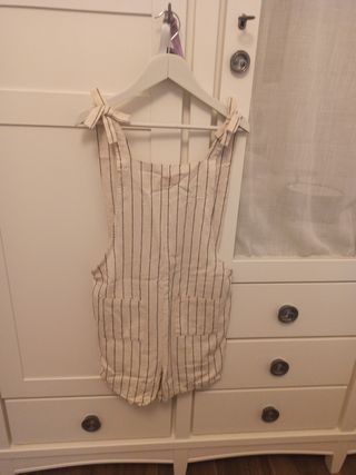 Mono de tirantas para niñas de 11-12 años. Marca Unit Kids(Hipercor). Color beige con rayas negras. Tela saco. Con el mono de mamá a juego(talla M). Ver fotos