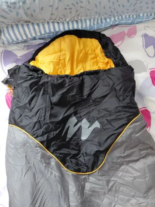 Saco de dormir para niños en excelente estado. - Color negro y gris. - Interior amarillo. - Diseño con capucha.