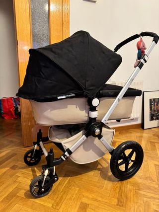Carro Bugaboo capazo y silla en perfecto estado en color negro. Diseño elegante y funcional. También tengo conjunto capota extensible, cubre silla y saco azul jaspeado. - Capota extensible. - Manillar ajustable. - Cesta de almacenamiento inferior. - Ruedas todoterreno.