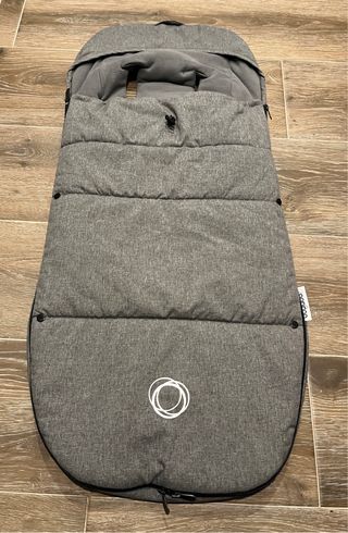 Saco de invierno Bugaboo en color gris. Mantiene al bebé abrigado y cómodo. - Exterior impermeable. - Interior forrado de tejido suave. - Capucha ajustable. Necesita lavado por estar guardado