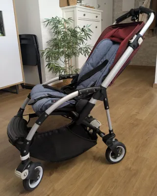Carrito Bugaboo Bee 5 en color azul y burdeos/gris - Chasis de aluminio. - Asiento reversible. - Capota extensible. - Cesta de compras. - Ruedas todoterreno. - Saco invierno - 2 capotas: granate y gris REGALO BURBUJA MARCA JANE Recogida en Benicalap