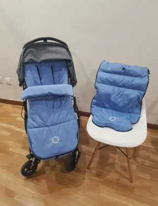 Saco para silla de paseo Bugaboo. - Color azul. - Ideal para invierno. - Original Viene dos forros. El de invierno y el polar relleno de plumón. El de invierno se salió un carril de la cremallera y la llevamos a arreglar. Perfecto para abrigar a tu bebé durante los paseos en invierno. nuevo costo 199€