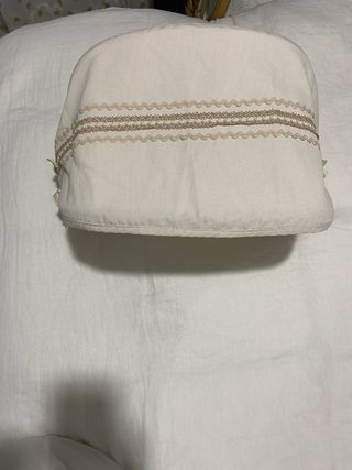 Conjunto de saco y capota hecho a mano para Bugaboo Camaleon. - Diseño exclusivo y artesanal. - Tejido de alta calidad en color beige. - Detalles de puntilla y lazo decorativo.