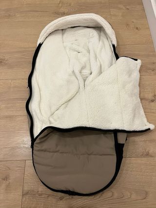Saco para silla de paseo de la marca BabyClic. Cálido, agradable al tacto y de diseño bonito. Se ha usado, pero está como nuevo. La cremallera que se ve en la foto se ha estropeado, puede arreglarse o usarse sin ella.