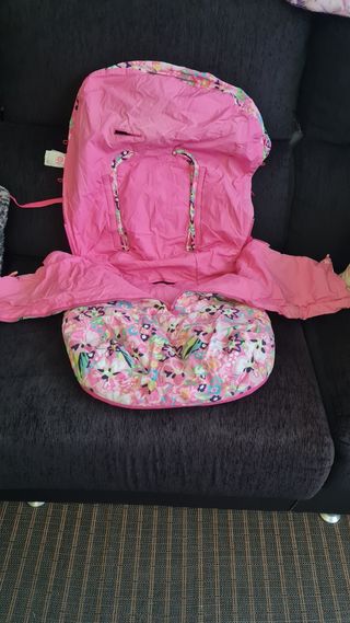 Saco para silla de paseo con un alegre estampado floral. - Diseño acolchado. - Cierre con cremallera. - Aberturas para el arnés.