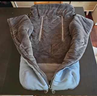Saco de invierno para silla de paseo, ideal para abrigar al bebé durante los meses más fríos. Está como nuevo. - Tejido exterior impermeable y resistente al viento. - Forro interior de polar suave y agradable al tacto. - Cremallera frontal para facilitar su colocación y extracción. - Abertura para arnés de seguridad. - Color gris.