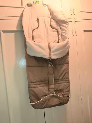 Saco para silla de paseo en color beige, ideal para mantener abrigado al bebé. Está en perfectos estado. - Interior forrado de pelo suave. - Cierre con cremallera frontal. - Cordones para ajustar la parte superior.