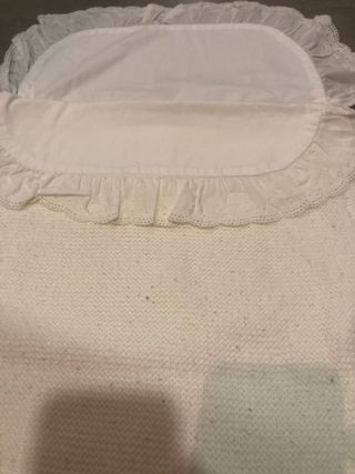Saco para silla de paseo de la marca Nait Nait en color blanco. Ideal para mantener al bebé abrigado y cómodo. - Tejido exterior de punto. - Forro interior suave. - Adorno de puntilla. - Cierre con corchete