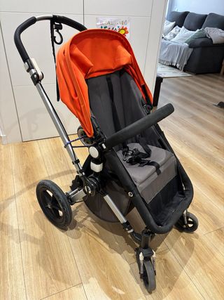 Silla de paseo Bugaboo Camaleón 3 en color naranja y gris. Ideal para el día a día. - Chasis de aluminio. - Capazo y silla. - Ruedas todoterreno. - Plataforma hermanos - plástico para lluvia - Saco Bugaboo para invierno - Sombrilla de capazo - Bolsa de cargo debajo - Disponible bolsa de viaje de colores solo en mano por dimensiones y peso