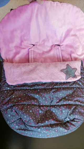 Saco universal para carrito de bebé de la marca Tuc Tuc. Ideal para mantener abrigado al pequeño. Ni usado 10 veces. En época de uso nos confinaron. - Color rosa con estampado de estrellas blancas. - Diseño acolchado para mayor comodidad. - Cierre de cremallera frontal.