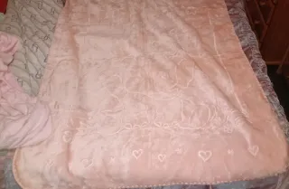 Conjunto de manta y saco de invierno en color rosa, con un tierno diseño de ositos y corazones. - Manta suave con estampado de ositos. - Saco con forro de peluche. - Ideal para mantener el calor en invierno. Se recoge en mi domicilio en Alicante NO ENVÍO