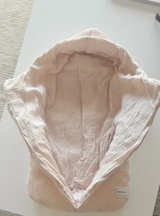 Saco de Minicoton en color crudo, ideal para el carro del bebé. Confeccionado en tejido de muselina. - Cierre con cremallera. - Capucha integrada. - Etiqueta de la marca Minicoton.