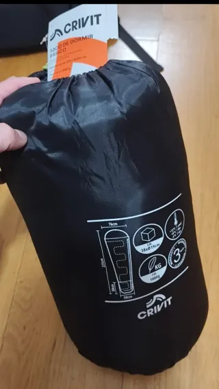 Saco de dormir de la marca Crivit, ideal para actividades al aire libre. - Diseño compacto y ligero. - Incluye bolsa de transporte. - Color negro. -Totalmente nuevo -datos en bolsa Disponibles dos unidades 20€, uno 11,50€.