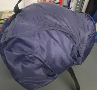 Saco de dormir azul marino en perfecto estado. - Está en su bolsa de plástico original con cierre. - Color azul marino intenso. - Ideal para acampar o viajes.