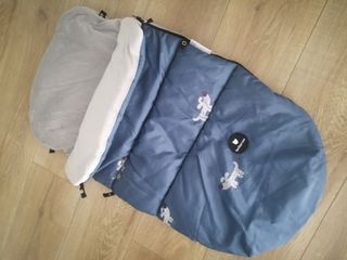 Saco de invierno para bebé en color azul. Esta nuevo, no ha sido usado nunca - Material exterior impermeable. - Interior suave y acolchado. - Aberturas para arnés de seguridad.