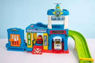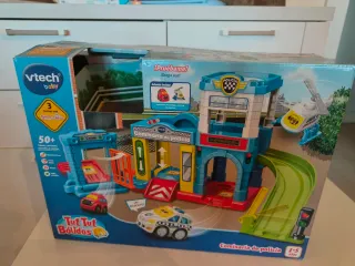 Comisaría de policía infantil VTech original en excelente estado. Set completo con múltiples zonas de juego: torre, helipuerto, garaje, celda y rampa de salida para vehículos. Incluye: 🚔 Vehículos originales con pilas 📦 Caja original 📘 Instrucciones originales Juguete educativo, divertido e interactivo, ideal para desarrollar la imaginación y el juego simbólico. Material resistente, diseño seguro para niños pequeños. Muy bien conservado, limpio y totalmente funcional. Se ha sacado de la caja y montado pero no se ha llegado a usar