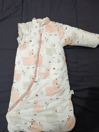 Saco de dormir para bebé con un adorable estampado de cisnes en tonos pastel. Perfecto para mantener al bebé abrigado y cómodo. - Diseño de cisnes y flores. - Cremallera frontal. - Mangas desmontables