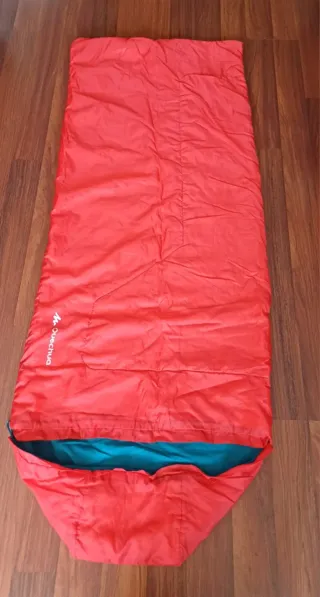 Saco de dormir de la marca Quechua, ideal para niños. Su color azul vibrante lo hace muy llamativo. - Diseño ligero y compacto. - Material resistente y fácil de limpiar.