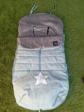 Saco de invierno para silla de paseo, diseño unisex. - Color gris y azul verdoso claro. - Detalle de estrella. - Etiqueta Kids Zone. Plástico interior en los pies. Interior gordito de pelo. Muy bonito. Muy poco uso