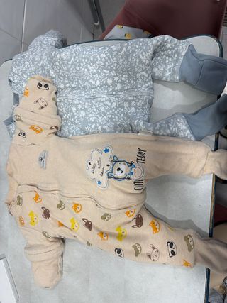 Sacos para bebé con un diseño estampado neutro, tanto niña como niño. En perfecto estado (Se entregan desinfectados y planchados) - Tejido suave y ligero. - Ideales para la temporada Marzo a septiembre incluidos. Uno es más gordito y otro para el verano (Marzo/abril/mayo y septiembre y otro para junio/julio/agosto)