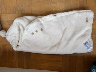 Saco de invierno para capazo, ideal para mantener al bebé abrigado. Son dos Los vendo por separado o juntos 40 cada uno juntos 60 - Tejido exterior de punto blanco. - Forro interior de pelo suave. - Cierre con botones de madera. - Detalle de pompón en la capucha. Marca Mayoral