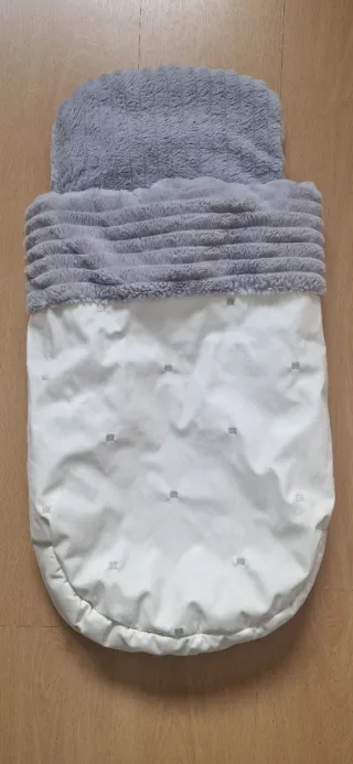 Saco para el capazo del carrito en color gris. Aporta comodidad y calidez. - Material suave y confortable. - Diseño acolchado. Muy poco uso, esta como nuevo. Con cremalleras a los lados. Es blanco/crema y el pelito gris. De polipiel, para que no se moje. Le corté la etiqueta, pero creo que es de uzturre