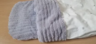 Saco para capazo de bebé, tejido en punto trenzado de color gris. Es suave y cálido, ideal para mantener al bebé abrigado. - Tejido exterior de punto. - Forro interior blanco. - Cierre con botones naranjas. * Precio 3€ Saco para capazo de bebe, en lana y echo a mano en color blanco. Suave y perfecto para entretiempo. - Sin forro * Precio 6€