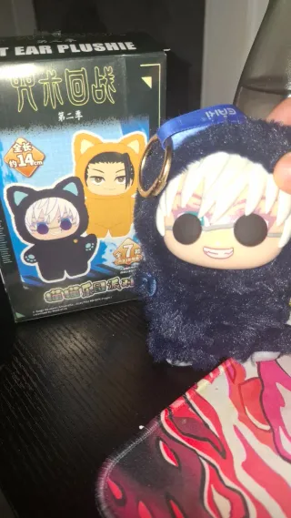 Peluche de Satoru Gojo con un adorable diseño. Lo vendo porque me salió repetido, solo lo he sacado para las fotos. - Material suave y esponjoso. - Detalles del personaje Satoru Gojo. - Incluye colgante y caja.