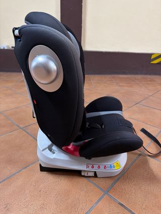 Silla de coche con sistema de anclaje Isofix. Diseñada para la seguridad y comodidad. - Tapicería acolchada. - Cinturón de seguridad de 5 puntos. - Protección lateral contra impactos (SIP). - giro 360 grados para facilitar sacar al bebe.