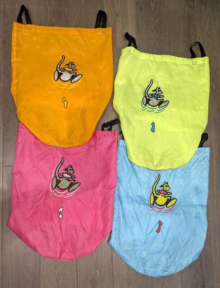 4 Sacos para el juego tradicional de carreras de sacos, ideal para fiestas y actividades al aire libre. Incluye cuatro sacos de colores. Son coloridos y muy resistentes. Están en excelente estado, tanto las costuras como las bases, las asas, el saco y la serigrafía. Miden 58cm de alto (+10 cm del asa) por lo que los pueden usar niños de cualquier edad. El saco amarillo tiene unas pequeñas manchas (se ven en foto detalle). No acepto ofertas. Envíos solo por inpost (no Correos).