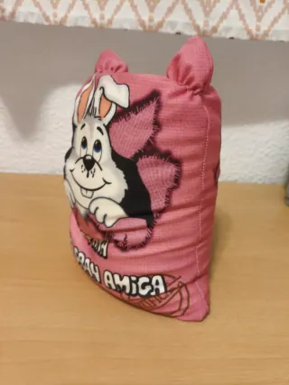 Adorable peluche con forma de saco, decorado. Relleno de bolitas Color rosa. - Texto Para una Gran Amiga.