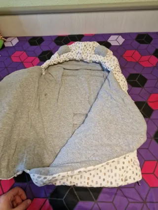 Saco de paseo en color gris, ideal para maxicosis y sillas de coche. - Interior con estampado estrellas. - Cierre con botones a presión. Es de kiabi como nuevo y perfecto para que vaya en el coche en su sillita calentito