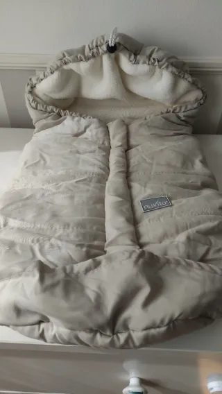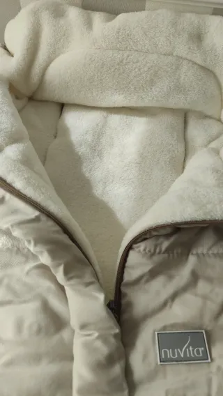 Saco universal de tejido suave y cálido, ideal para capazo y silla de coche. Cuenta con un diseño acolchado para mayor confort. - Interior y exterior de tejido muy suave. - Cremallera central frontal y apertura para los pies en la parte inferior. - Capucha con cordón ajustable. - Color beige. - Marca Nuvita, modelo Ovetto City 80cm