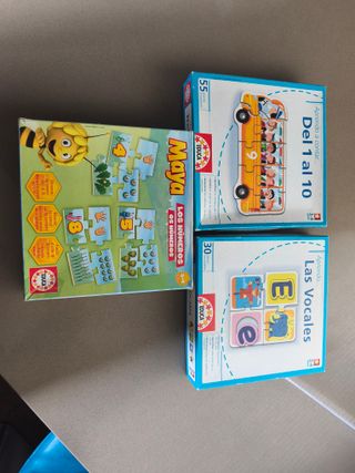 Lote de 3 puzzles educativos de la marca Educa para aprender los números y las vocales.