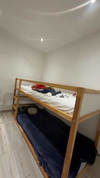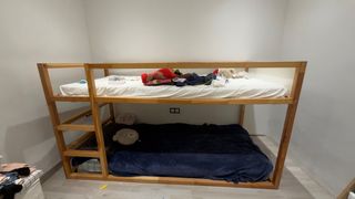 Cama alta de madera modelo Kura de IKEA. Ideal para aprovechar el espacio. - Estructura de madera. No cuenta parte de abajo con laminas para sostener el colchon solo las de arriba - Escalera lateral para acceso. En condiciones buenas
