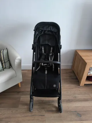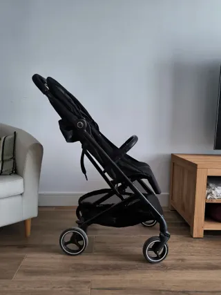 Silla de paseo Cybex Beezy en color negro. Compacta y ligera para el día a día. Hecha para viajar con ella en cabina de avion. Silla ligera y compacta, ideal para ciudad y viajes. Está en muy buen estado, siempre usada con protector y sólo por una niña. Se pliega y despliega muy fácil y ocupa poco espacio. Incluye plástico de lluvia. Color gris antracita (neutral y combina con todo). Capota extensible, arnés de seguridad de 5 puntos. Muy cómoda y más estable que otras marcas como Jools aer+