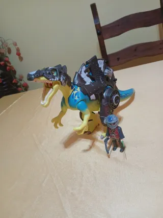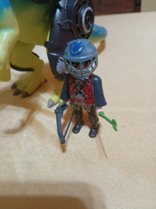 Set de figuras de Playmobil que incluye un dinosaurio con armadura y un guerrero. - Dinosaurio con detalles en azul y amarillo. - Guerrero con casco y arco. ENVIOS A PARTIR DE 20€ DE COMPRA AGRUPA VARIOS ANUNCIOS