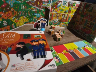 Juego de mesa Sam the Villain de Cayro. - Juego de cooperación. - Diseñado en España. - Para 2-6 jugadores. - Duración aproximada: 20 minutos.