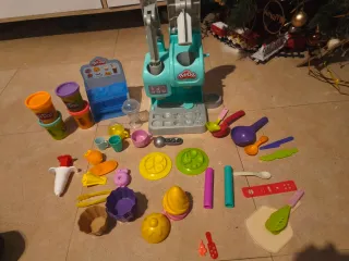 Set de juguetes de plastilina Play-Doh con accesorios para crear comidas. - Incluye máquina de cocina, moldes y utensilios. - Varios botes de plastilina. - todos o casi todos los accesorios
